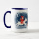 Uma cabra divertida no espírito de Natal na caneca de neve. Deixe-o nevar. Deixe-o semear!