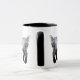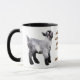 Um bebê que diminuto cinzento, branco e preto a cabra com ele é nariz no ar é esta foto pelo rissol Martin. A imagem reversa está enfrentando-se.