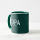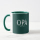 Design de caneca de café Opa com ano de fundação apresentando uma fonte branca estampada em um fundo verde caçador. Clique em personalizar para editar a cor do fundo!. Visite nossa loja para ver esta caneca em uma grande variedade de nomes de avôs.