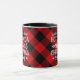 Esta caneca divertida tem tipografia na moda, lendo, "Eu só quero beber cacau quente e assistir filmes de Natal" sobre xadrez de verificação de búfalos vermelho e preto.