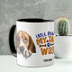 "Você faz minha vara de vela" declara esta caneca fofa. Um cão de caça com olhos cheios de espuma está em cada lado. Bonita para o dono do cão de caça, mas apropriada para qualquer um que você ama no Dia de os namorados também! Você pode adicionar o nome de alguém no meio inferior ou excluir o texto, se quiser.