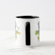 "AME MEU RECUPERADOR DE LABRADOR" declara esta caneca para o dono do cachorro preto. Cada lado da caneca tem um belo retrato de aquarela de um labrador preto Retriever enquadrado por flores de girassol e folhas verdes. Misturados são prigos de eucalipto verde azul. Entre as duas imagens está o texto, que pode ser facilmente personalizado, ou mesmo removido, por você.