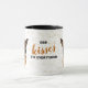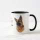 "Beijos GSD consertam tudo" declara esta caneca fofa para o dono do Cachorro German shepherd. A imagem em cada lado é um retrato de um belo GSD. As imagens e o texto são colocados sobre um fundo branco que é aspergido com um confete dourado.