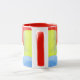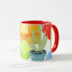 Caneca de cacto colorida. Diversão, abstrato minimalista e divertida design. Perfeito para alguém com gostos modernos e modernos. Faz um presente excelente também! Espelhos de laranja, verde, azul e amarelo atrás de um cacto cercado.