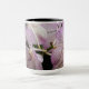 Orquídea branca com manchas roxas e uma caneca central de café/chá. Grande 15oz mostrado. Opções de tamanho e imagem menores disponíveis.