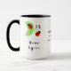 Escritório em casa, café, cobo, canecas com damybugs. Adicione suas iniciais e diga sobre as condições em casa. Design de Claudine Boerner.