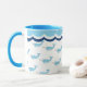Aproveite sua xícara de café da manhã com esta adorável caneca de narval. Eles têm narvais ilustrados em um fundo branco com ondas no topo. Visite nossa loja www.zazzle.com/ybnormalone para mais presentes incríveis. Obrigada Karen Hall #zazzlemade