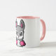 Adicione um soco lúdico à sua rotina do café com este adorável e assertivo design de coelho de boxe. Apresentando um coelho estilizado de cinza com grandes olhos expressivos e luvas de boxe cor-de-rosa, essa mascote de desenho animado exumenta tanto encanto quanto determinação. Os contornos ousados e as cores vibrantes fazem desta caneca uma peça sobressalente, perfeita para entusiastas desportivos, fãs de boxe ou qualquer pessoa que ame designs únicos e divertidos. Seja para casa, escritório ou como presente, esta caneca é um complemento para qualquer coleção!