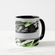 Esta caneca de café é mostrada com uma impressão de fotografia-arte de um carro esportivo. Personalize este item ou comprar como está. Imagem do stock vecteezy.com