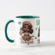 Esta caneca de na moda apresenta uma jovem negra adorável com pele marrom caramelo, lábios cheios brilhantes e grandes olhos expressivos. Ela está vestida com uma roupa de café gelada inspirada em café — impressão de café, saia de mocha com pop verdes de menta, e jaqueta de verdades castanha e creme. Arrancando uma bosta inclinada e calçados bonitinhos, ela faz uma pose lúdica enquanto segura seu 🧋 gelado de café. Perfeito por dar às garotas que amam moda, café e talento! ✨ Personalizar com seu nome e texto!