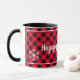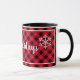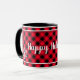 Feliz Natal Mug A caneca de café Feriado Mug é mostrada aqui com um festivo impressão de xadrez de búfalo de Natal com flocos de neve. Personalize este item ou comprar como está. Imagem do stock freepik.com