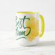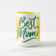 Um presente sincero para a melhor mãe de sempre. Esta vibrante caneca de café apresenta tipografia manuscrita "Melhor Mãe" em verde profundo, combinada com um design de tulipa amarelo macio. A combinação de cores alegre o torna perfeito para o Dia das Mães, aniversários, ou só porque. Uma bela maneira de iluminar sua rotina matinal.