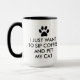 Eu só quero tomar café e acariciar meu gato. Excelente para amantes de gatos e donos de gatos. Com uma pata preta e uma tipografia em negrito/letras preta.
