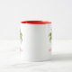 A caneca de café é mostrada em branco com dentro vermelho, com impressão de palmeiras de Natal. O texto diz Feliz Navidad. Personalize esta caneca ou comprar como está.