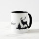 Esta caneca de café cerâmica é mostrada com um impressão de arte de um alce com texto Yellowstone. Interior preto e alça. Personalize este item ou comprar como está. Imagem do stock