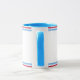Fidji National Flag Patriotic Coffee Mug com a inscrição deliciosa "Fiji", que está inundada com o padrão e as cores da bandeira nacional. O design é acabado com as duas linhas duplas finas em complemento das cores no topo e no fundo do copo. As cores do dentro do copo e da alça do copo estão equilibradas com o resto das cores do copo. As cores da linha podem ser alteradas para qualquer cor do seu gosto pressionando o botão "Editar Design". Aqui está o companheiro fantástico para a xícara de café diária. Design charmoso, cores adoráveis e o aspecto único fazem dele um presente perfeito para qualquer ocasião. © 2023 PaísesDoMundo