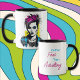 Café Primeiro, Depois Adulta. Uma mulher alternativo gótica bonito num mohawk com sotaques cor-de-rosa e azuis e uma citação engraçada de café.