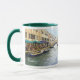 Branco e caçador verde 11 oz. Combinação de caneca com uma imagem, em ambos os lados, de cafés quentes ao longo de um canal em Veneza, Itália. Ver pote de doces correspondente, placa de papel e azulejo de cerâmica quadrada. Veja toda a coleção de Italy Mug na seção HOME.