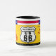 A rota 66 dos E.U., comissão em 1925 e a última parcela da rota 66 foram desarmadas pelo governo federal em 1984. 2.448 milhas de Chicago a Los Angeles através de oito estados: Illinois, Missouri, Kansas, Oklahoma, Texas, New mexico, arizona, e Califórnia. John Steinbeck, autor "das uvas do Wrath," rota chamada 66, da "a estrada mãe." Obtenha seus pontapés na rota 66, apenas seja certo que o you've obteve seu café em uma destas canecas!