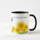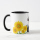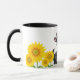 Esta caneca de café cerâmica é mostrada com uma vaca sertaneja e impressão de arte girassol. Personalize este item ou comprar como está.