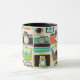 Branco e preto 11 oz. uma caneca combinada com uma imagem de câmaras retrorreflectoras coloridas em bege. Ver frasco correspondente, placa de papel e portas copos. Veja toda a coleção Nifty 50 Mug na COMIDA/BEV | Seção pratos.
