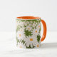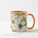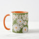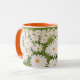 Campo de Daisies Mug - Esta caneca apresenta uma ilustração encantadora de um campo de margaridas brancas com centros amarelo-alaranjados brilhantes, colocados em meio a uma luxuosa grama verde. A design é uma representação serena de um campo de primavera ou verão, evocando sentimentos de serenidade e beleza natural. O interior e a alça da caneca são cor de laranja, adicionando um pop de calor ao design geral, mas você pode mudar isso se preferir uma cor diferente.