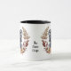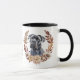 Uma bonito coroa de outono em tons de cinamão marrom, bronzeado e creme rodeia a imagem aquosa de um lindo Cão negro de Cana-de-Cana. A imagem é impressa duas vezes na caneca, com seu texto personalizado entre eles.