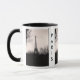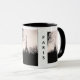caneca cerâmica branca, aparada no preto, com a foto "velha" da torre Eiffel em Paris, e as palavras: PARIS