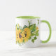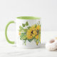Café ou caneca de chá decorada com girassóis alegres.