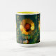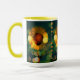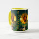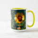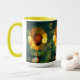Linda caneca de café projetada que ajudará a iluminar seu dia. Design muito único com uma imagem impressa de uma pintura acrílica de um girassol brilhando à luz do sol.