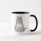 Gato de cinza bonitinho com olhos pretos, nariz rosa. Diversão e caneca de café única. Arte de desenho original de Taylor Addams.