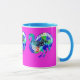 Rico em padrão e cor, esta caneca maravilhosa será a favorita para beber bebidas! Três belas aves decorativas são apresentadas em frente a um fundo cor-de-rosa brilhante e são enquadradas em azul. Esse design original preto e branco desenhado foi alterado com o uso de filtros fotográficos, e é baseado na arte da civilização miceana na Grécia antiga.