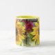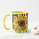 A caneca de Ringer amarela com design de girassol em greve, clareia o dia e leva a manhã para um excelente começando com uma imagem alegre!