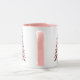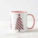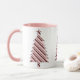 Mug numa silhueta clássica de uma árvore de Natal em cor rosa de morango pastel, com padronização com listras de doces castanhos de chocolate escuro