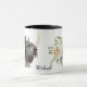 Por trás deste belo retrato de aquarela de um majestoso cão Giant Schnauzer nesta caneca está um bonito buquê branco de rosa. A imagem do buquê e do cão tem uma espiral sobreposta de faux glitter confetti. A imagem é impressa em dois lados, com seu texto personalizado em preto no centro, na parte inferior, entre as imagens. Perfeito para quem perdeu o coração para um Schnauzer! *Observe que a imagem é impressa e não contém brilho real.
