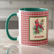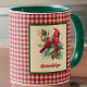 Este par de cardeais adoráveis quer ajudar a animá-lo quando você tomar seu café da manhã ou tomar seu chá da tarde. O fundo da caneca é uma xadrez chic de uma fazenda tipo gingham, e o cardeal é enquadrado em um verde de Natal contrastante. O nome do proprietário da caneca aparece em um script de tipo vermelho, portanto, certifique-se de que o nome do seu destinatário ou do seu destinatário esteja na seção Personalizar. Se você ama assistir cardeais na floresta ou até mesmo no seu quintal, esta xícara rústica do estilo country pode lembrá-lo daqueles adoráveis pássaros vermelhos brilhantes. Esta design vem em vários estilos diferentes de canecas, objetos de vidro e artigos de bebidas. A escolha aqui inclui uma pega verde e interior verde, mas você pode optar por uma caneca com uma pega e interior lisos.
