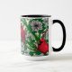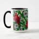 Padrão de Natal desenhado à mão com aves cardeais, flores de poinsettia, bagas de inverno e ramos de abeto