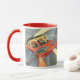 Ilustração vintage imagem de viagem e transporte de ficção científica futurista. Um casal andando em um carro voador à noite com os faróis acesos. Assemelha-se a um carro de polícia antigo com a luz giratória no topo do teto. Um design clássico de ficção científica de quadrinhos retrô dos anos 50 do futuro.