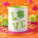 Uma linda caneca Zazzle Dia de São Patrício verde, esta design apresenta "Amor" em letras maiúsculas. Perfeito para a Rua. Dia do Patrick, compre o seu hoje! Gráfico criado por: Prettygrafik design (https://www.etsy.com/shop/Prettygrafikdesign)