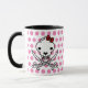 Beba seu café desta caneca clássica com este desenho fofo e assustador de um Caveira Pirata e Ossos do Gatinho Jolly. O fundo é uma bolinhas rosa. E por que não haveria um Pirata de Gato? Um crânio de gato e ossos não são bonitinhos para piratas de gatos? Jolly Gatinho é, é claro, uma peça sobre Jolly Roger, os piratas do crânio e da bandeira dos ossos mostram suas vítimas enquanto as perseguiam. Fiz duas versões. Um baseado em um crânio real de um gato e um mais bonito em uma versão de manga. Como fundo, escolhi preto sinistro, vermelho de sangue e rosa feminino. Embora a crista seja famosa como "crânio e ossos", escolhi dois sabres curvos em vez de ossos. Porque eu acho que sabores parecem legal.