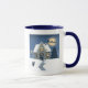 Beba suas bebidas favoritas desta caneca de natal aconchegante! Mostra um gato pequeno a caminho da neve. Não se preocupe, uma casa quente está esperando. E no céu estrelado, somente visível para nosso gatinho é o papai noel de dormir, passando em frente à lua.