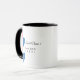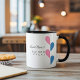 A caneca de café personalizada mostra corações cor-de-rosa e metade azul, juntamente com até quatro campos de tipografia para nomes, títulos ou mensagens. Atualmente, ele exibe "Best MOM Ever!" e "Best PAI Ever!" em uma design elegante e adorável. Esta caneca personalizada é um presente perfeito e ponderado para amantes do café, especialmente pais, avós, recém-casados ou casais celebrando aniversários ou ocasiões especiais. © Wafa Y. Dahdal - Todos os direitos reservados.