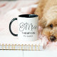 A escrita de caligrafia negra moderna e casual "Sra." da caneca de café feminina apresenta texto personalizado que pode ser personalizado com o novo sobrenome casado da noiva e a data/data do casamento estabelecida. Faz um presente perfeito para a noiva recém-casada!
