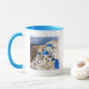 Igrejas e casas de telhado azul estão por toda parte na Ilha. Santorini. Grécia. Crédito: Tom Norring / SuperStock.com
