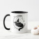 Um gato preto dormindo em lua crescente, com um chapéu de bruxa descansando suavemente sobre um ouvido. Linhas mínimas, sonhar e vibração suave.