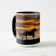 Cavalo De Trote Normal No Sunset, Coffee Mug. Arte Digital. Silhueta de cavalo padrão e corrida de motorista no pôr do sol. Totalmente personalizável; faça isso seu. Edite o texto de seu gosto ou remova-o completamente.