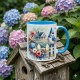 Um encantador azul-jay pousa numa cerca branca rodeada por flores exuberantes de jardim de cottage em tons suaves de aquarela de azul celeste, rosa beijo, lavanda e folhagem fresca. Uma casa de fazenda pitoresca repousa suavemente ao fundo, criando um momento pacífico no campo, repleto de luz, ar e beleza simples. Flores delicadas enquadram a cena num estilo cottagecore caprichoso, enquanto espirais graciosas e passarinhos adicionam movimento e magia de conto de fadas. O clima geral parece nostálgico, sereno e caloroso, misturando charme shabby chic com elegância pastoral romântica. Esta obra de arte captura a alegria suave de uma manhã tranquila num jardim campestre em flor. Arte gerada por IA.