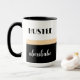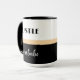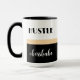 Depressa como um chefe, babe Mug. Um design moderno, chic, com tipografia ousada sobre um fundo preto e branco dividido por uma borda dourada do champanhe. Personalize a caneca com seu nome no verso.