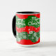 Celebrate the holiday season with this festive Christmas Mug, featuring elegant white ornaments, snowflakes, and playful details like cute animal faces. The design highlights the Merry Christmas message in a stylish script, making it a perfect gift for family, friends, or customers.