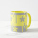 Caneca cinza e impressão amarela,